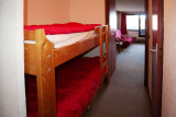 1 double sofa bed in the living room, 2 bunk beds in the entry, a double room