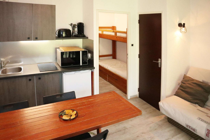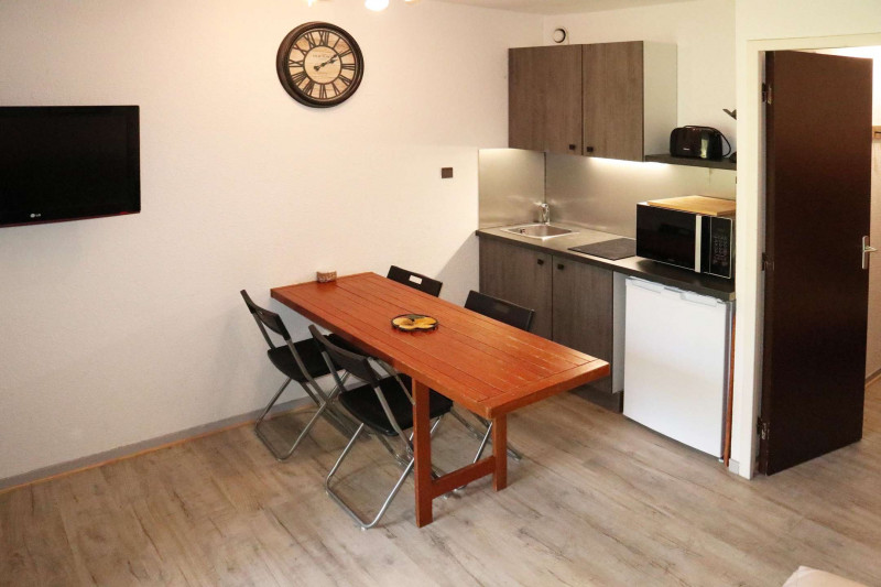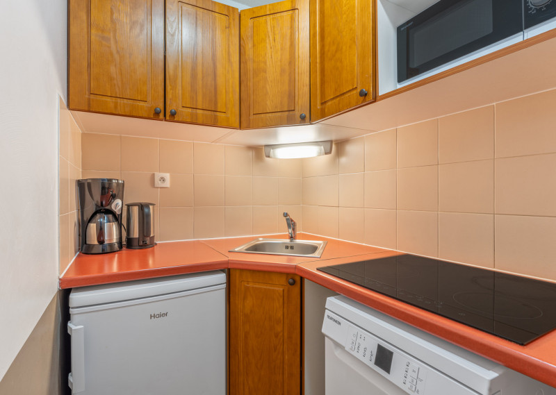 This 33m² studio with sleeping corner can accomodate for up to 4 people.Facing East, it offers a direct view at eye level with the pistes and is ...