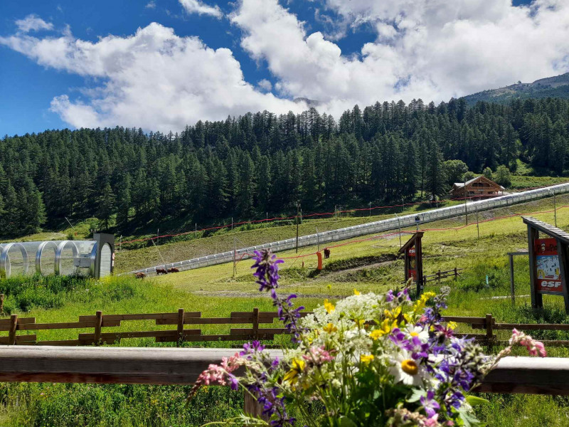 This pleasant 2-room apartment facing Southwest offers a breathtaking view of the Mazelière valley and the larch forest, in a modern and f...
